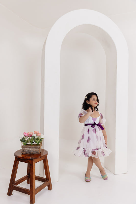 STELLA ORGANZA PURPLE LEAF PRINTED DRESS WITH BELT