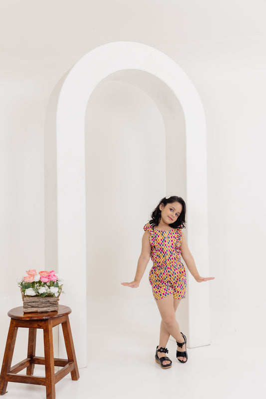 12% OFFARIA YELLOW PRINTED ROMPER DRESS