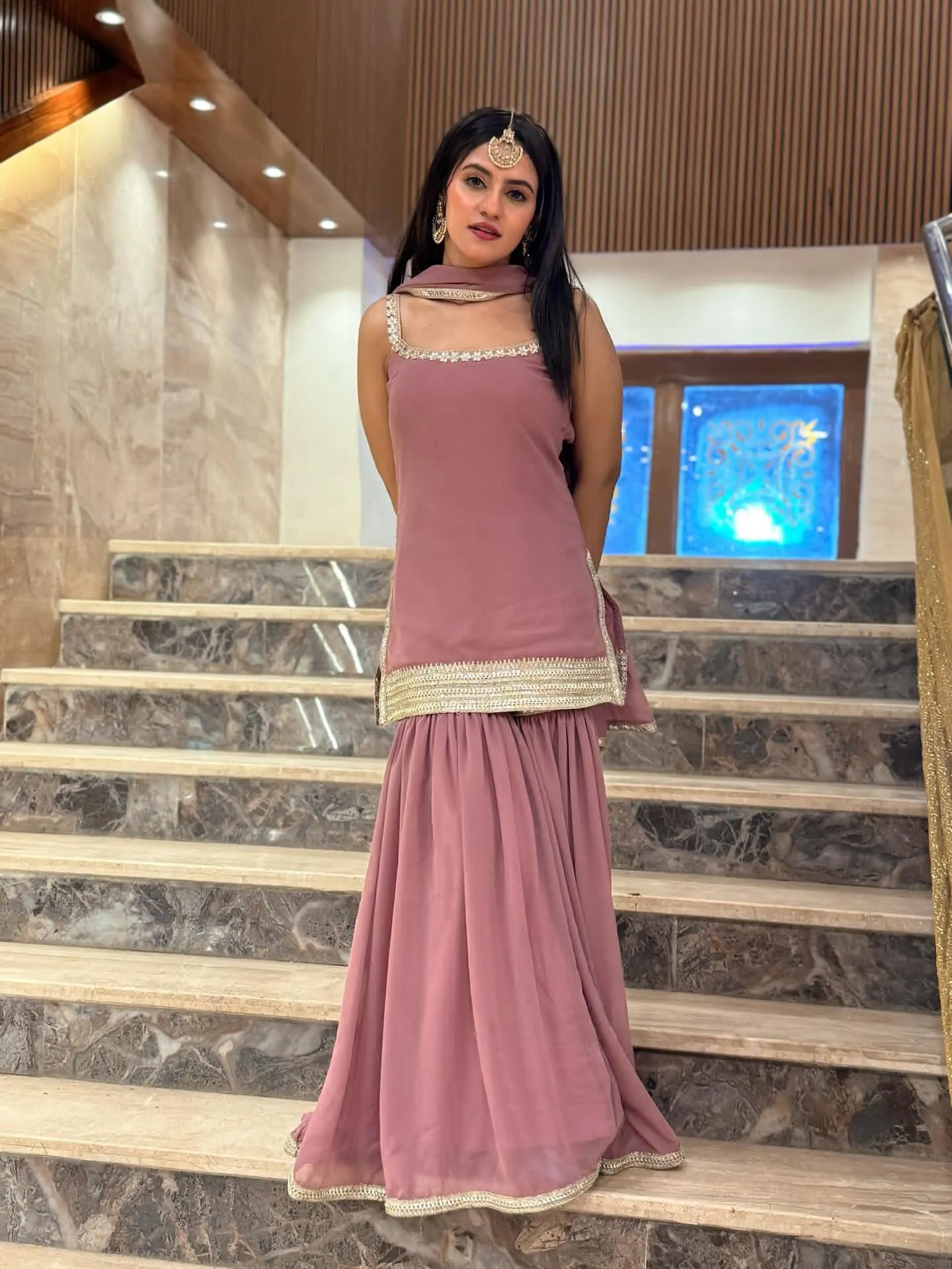 AVYA MAUVE DETAILED SHARARA SET
