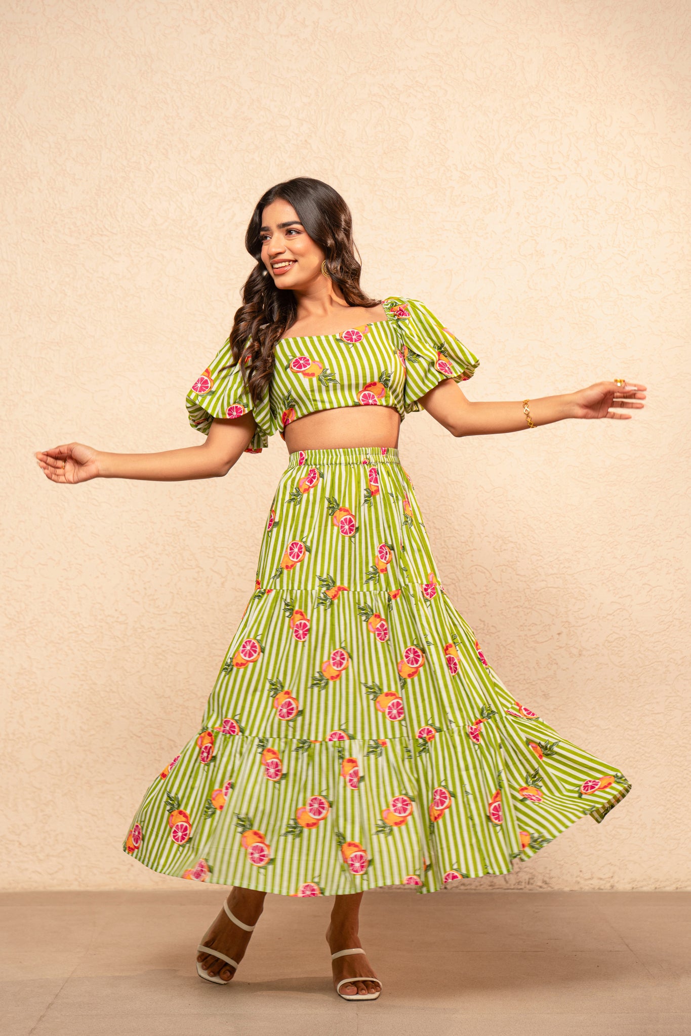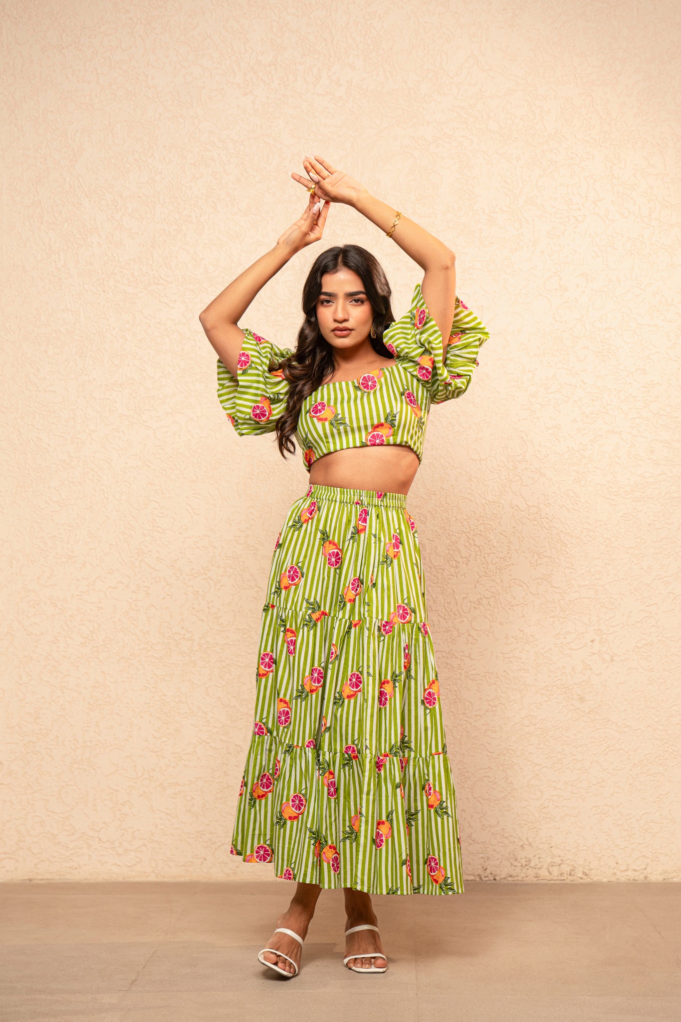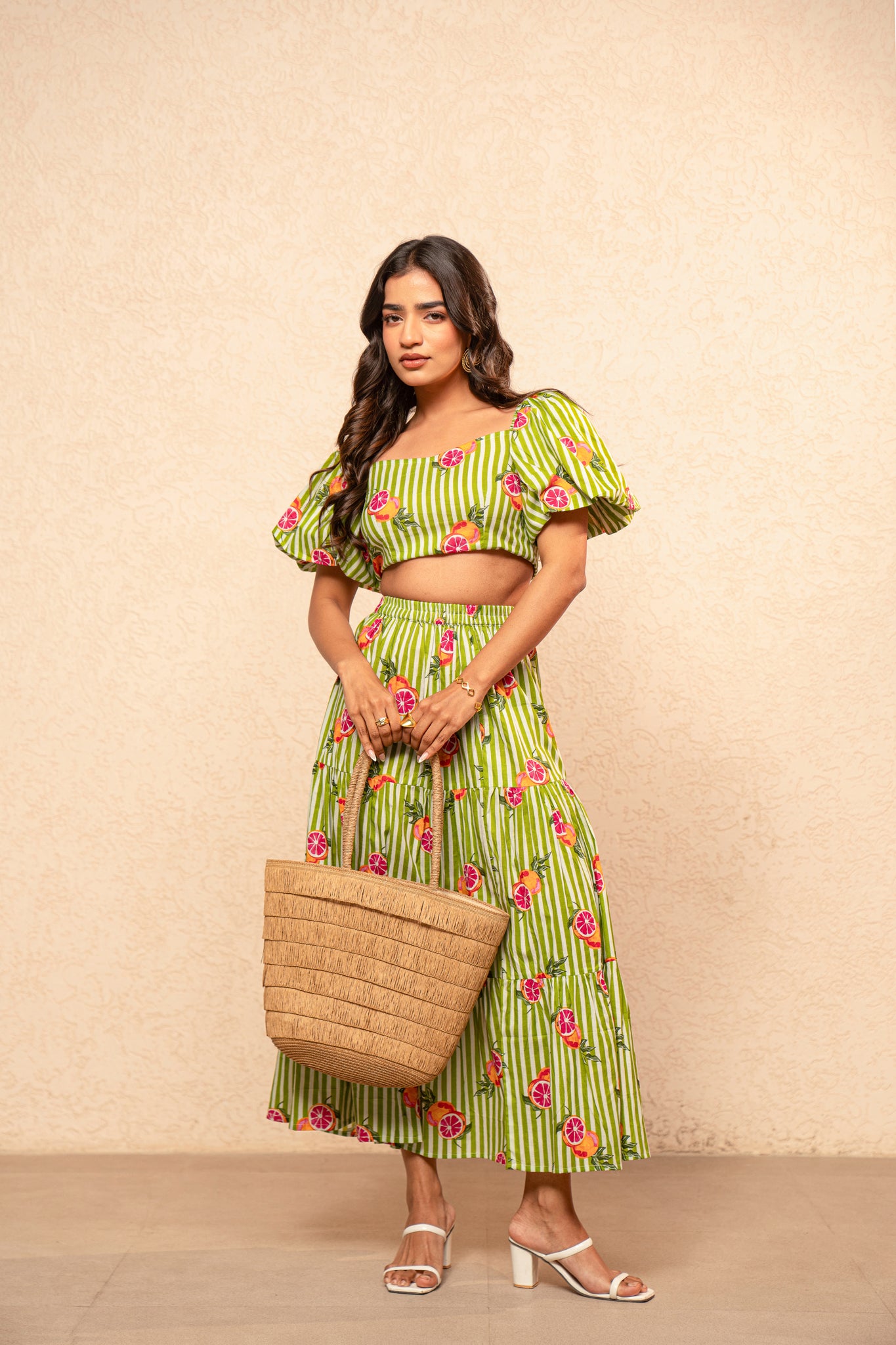 EDWINA GREEN PRINTED STRIPED COORD SET