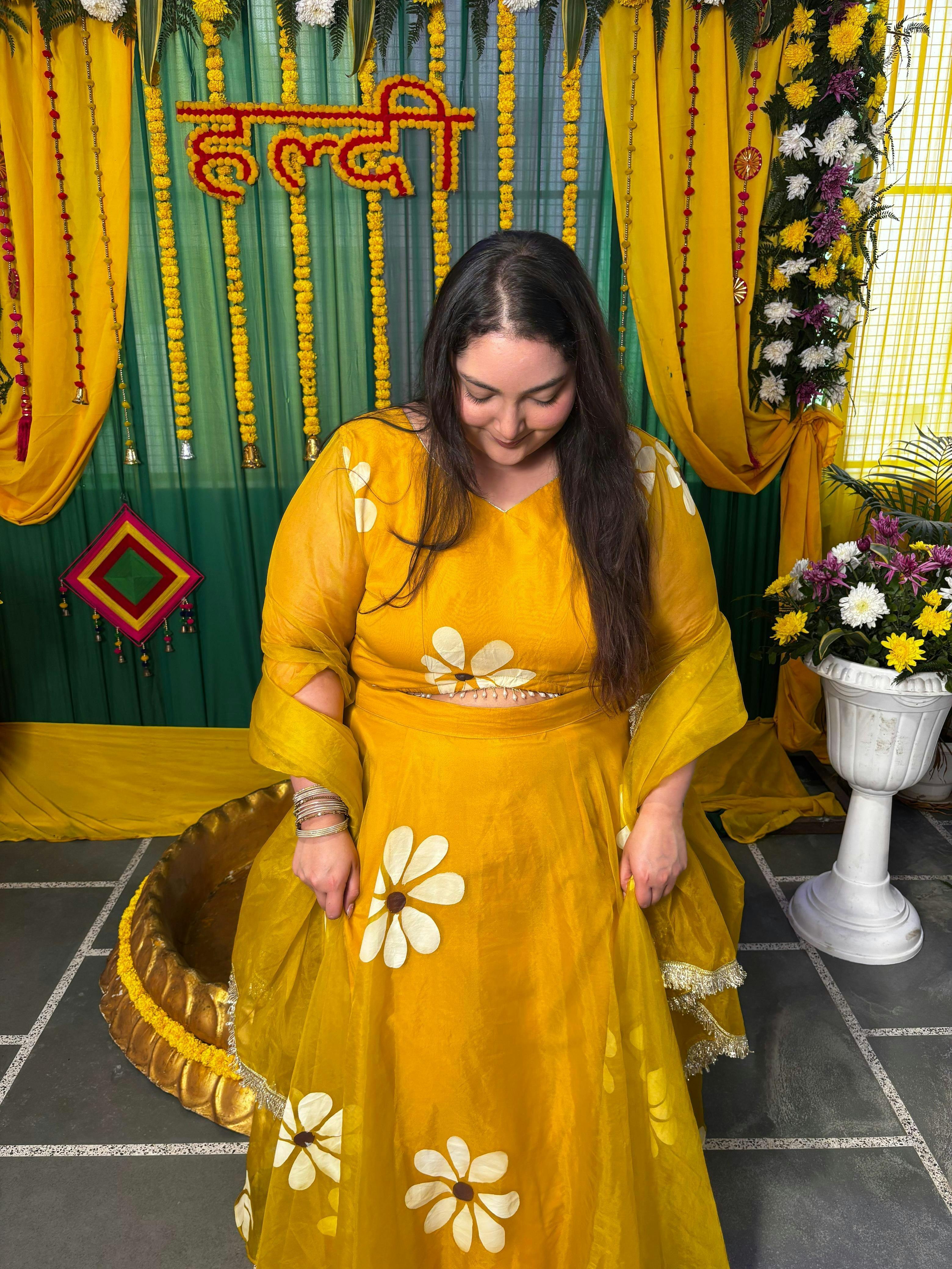 HIRAL YELLOW HANDPAINTED LEHENGA