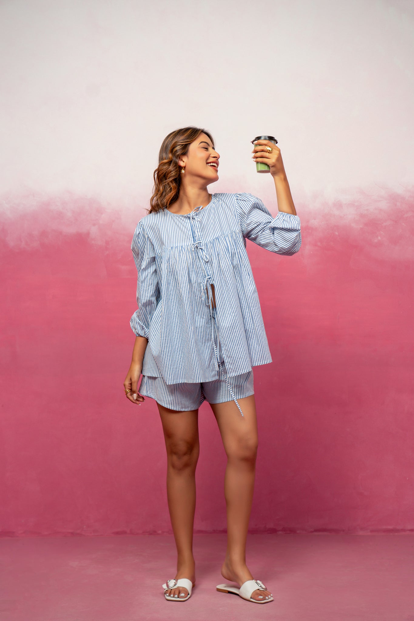 LINA BLUE STRIPED SHORT COORD SET