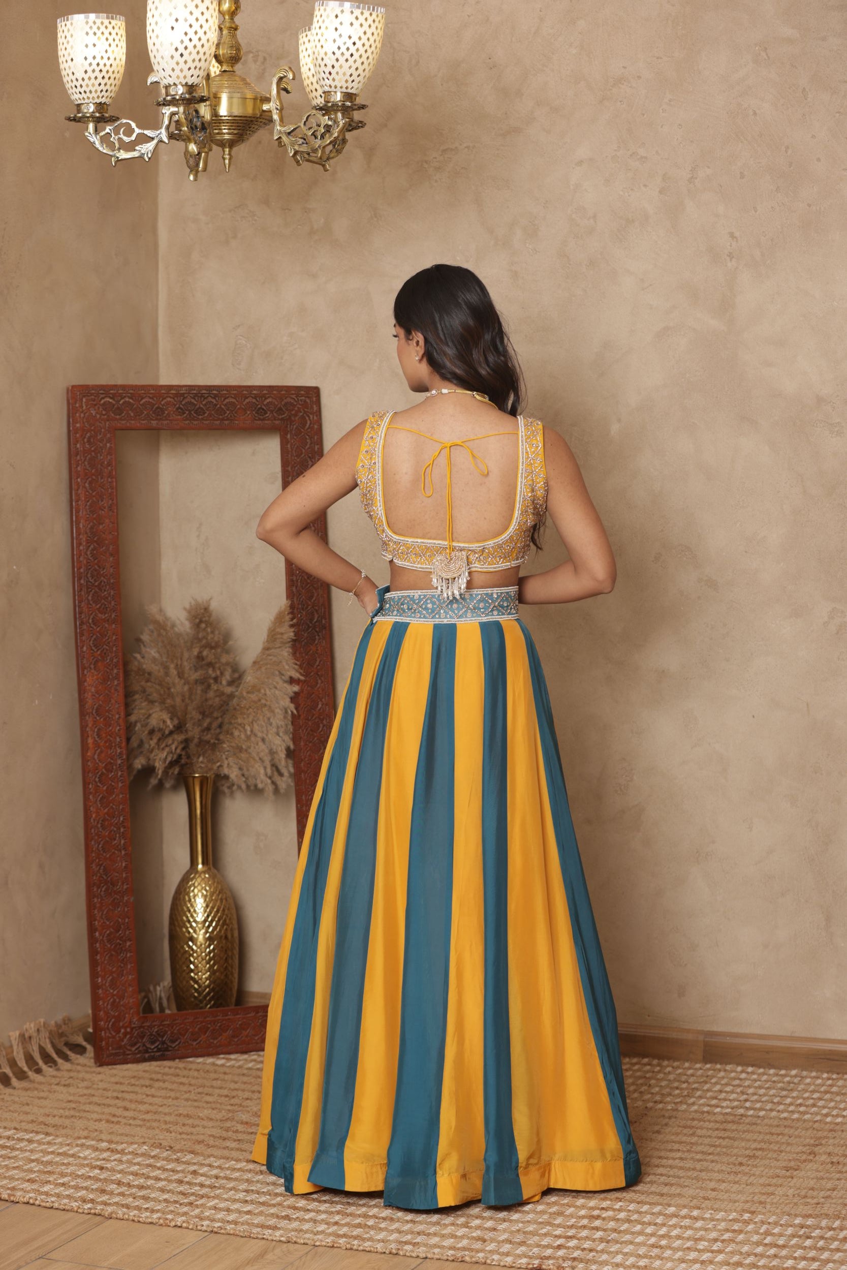 MALVIKA YELLOW-GREEN KALI EMBROIDERED LEHENGA
