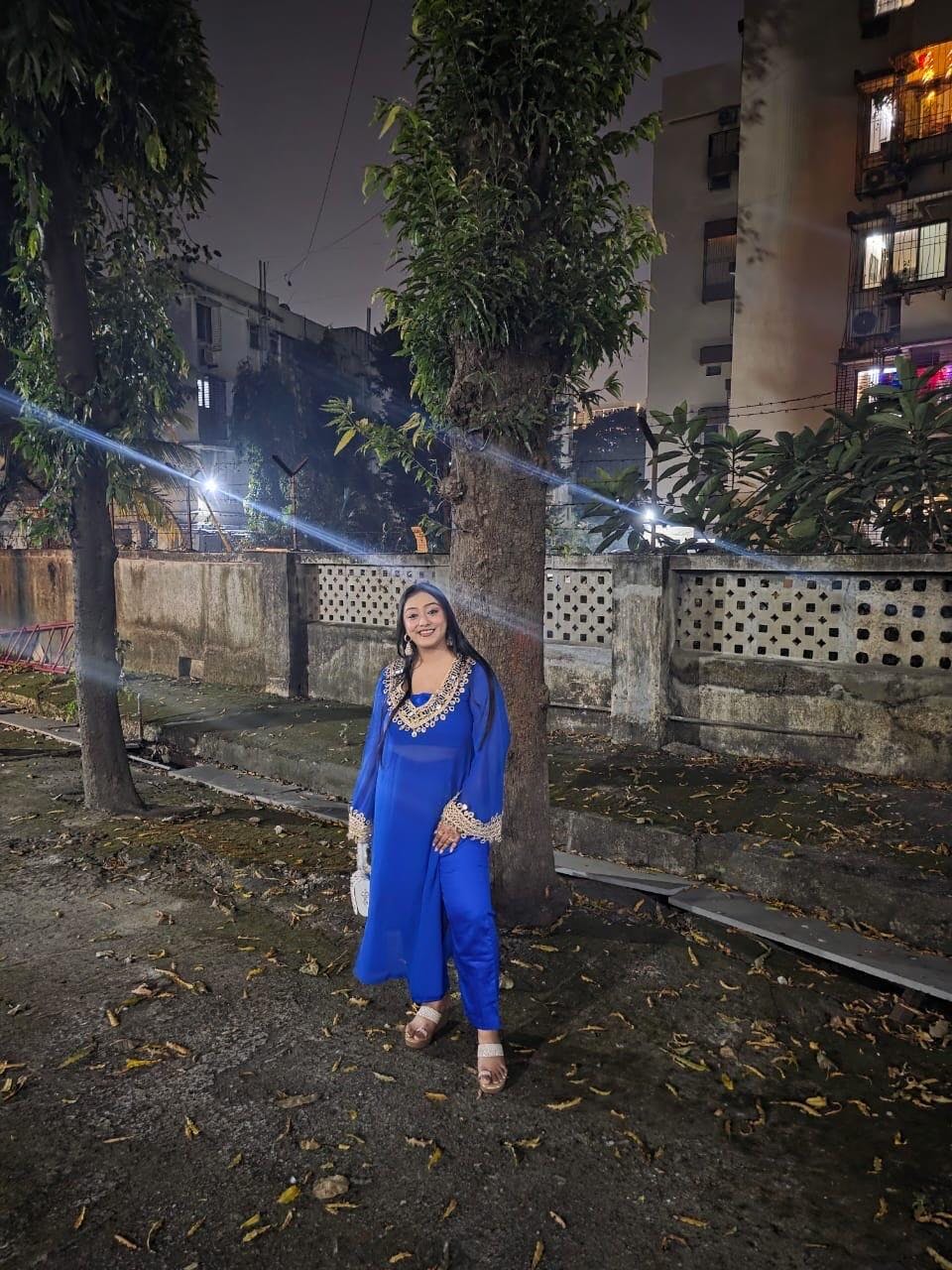 MOUSMI ROYAL BLUE MIRROR LACE WORK FUSION SET